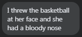 “I threw a basketball at her face and she had a bloody nose”